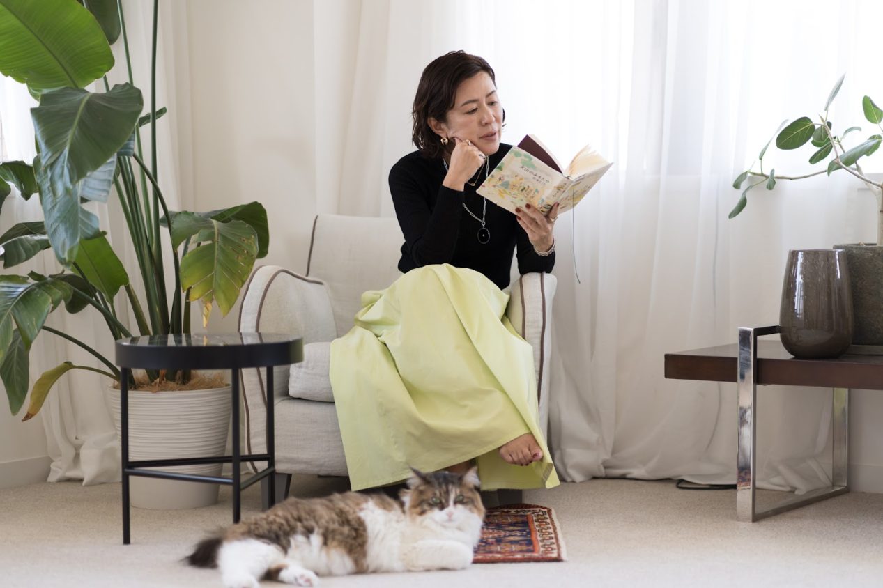 愛用アイテムは下にご紹介しますが、ボディに関しては程よい筋肉量と姿勢は絶対に必要。私は100歳まで自分の足で歩きたいと思っているので(笑)。筋肉をつけるための努力は、一生懸命、頑張っているところです。心に関してもメリハリを意識しています。メンタルも一度緩めないとまた引き締めることができないので、1日の終わりには必ずオンからオフへスイッチを入れ替えて、心を緩めます。大好きな赤ワインをいただきながら愛猫の「パニたん」と戯れたり、読書をしたりなど。